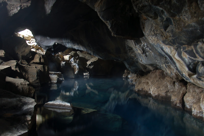 Une grotte remplie d’eau bleu ciel qui devait frôler les 50° ! Si elle avait été moins chaude on se serait volontiers baignés dedans 😉